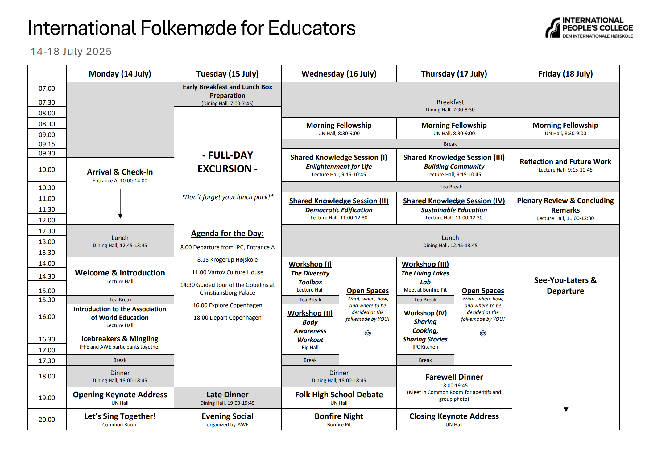 The International People’s College (IPC) is the perfect host for the International Folkemøde for Educators because it embodies the very essence of the Folk High School movement on a global scale. Founded to promote international understanding and lifelong learning, IPC provides a unique, community-driven environment where educators from around the world can engage in meaningful dialogue and exchange ideas. With its rich history, international outlook, and deep connection to Grundtvig’s philosophy, IPC offers the ideal setting to strengthen global networks, inspire new initiatives, and shape the future of Folk High Schools worldwide. Located in Elsinore, close to key cultural and educational landmarks, IPC ensures that participants can both experience and contribute to the living tradition of the Folk High School movement.